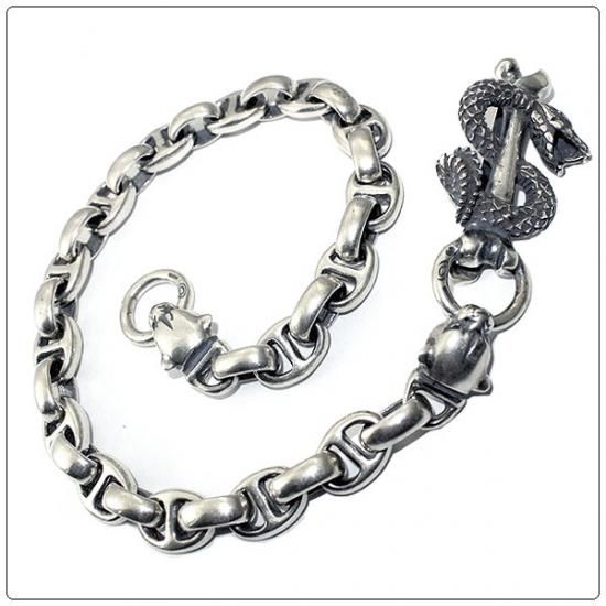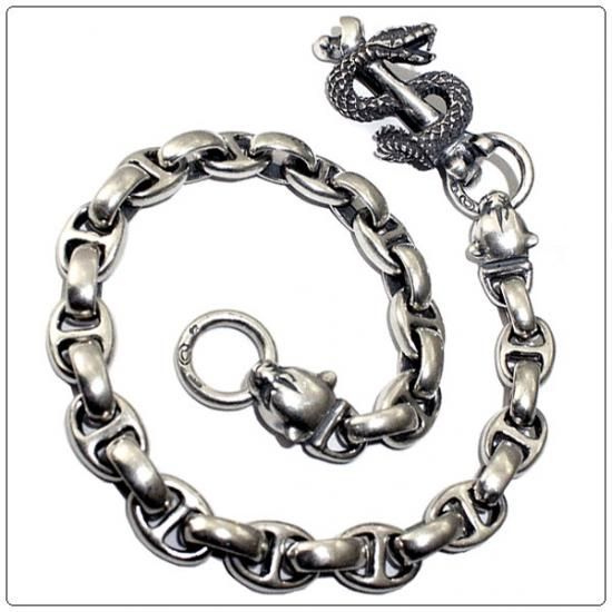 Gaboratory/WALLET CHAIN SNAKE KEEPER WITH H.W.O & ANCHOR LINKS ALL SMOOTH WITH 2PANTHER HEADS 22INCH