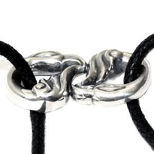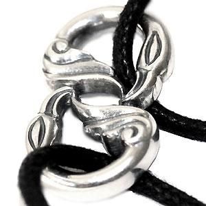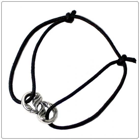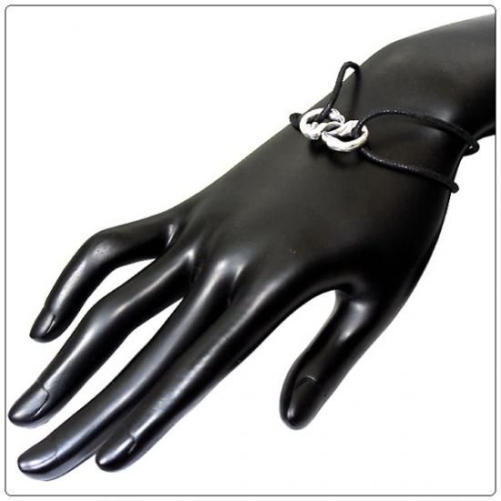 紐の結び目を引っ張ることによりサイズ調整ができるイージーブレス。インフィニティ(無限大)と呼ばれるシルバーパーツがアクセントとなっている。重ね着けなどに容易な細身のスタイル、そしてシルバーブランドの重量感を感じさせないイージーな作りからファッションにも気軽に溶け込ませやすいデザインとなっています。価格もリーズナブルなのでプレゼントにもお勧め。こちらはスモールより一回りインフィニティー部分が大きいミディアム・サイズ。