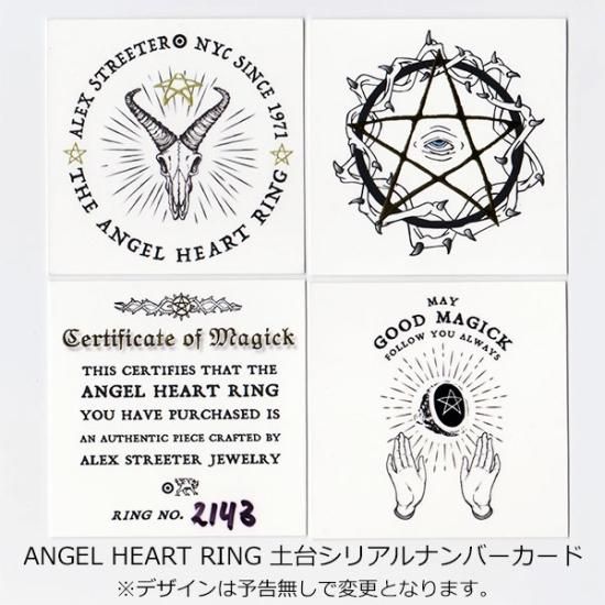 1971年に設立されたアレックスストリーター。1987年に制作されたアメリカ映画「エンゼルハート」でロバートデニーロが悪魔を崇拝している象徴として着用したエンジェルハートリングでアレックスストリーターを代表するアイテムであり、ミュージシャンの「マリリンマンソン」、「マドンナ」、日本のミュージシャンでは「hyde/ハイド」氏が愛用している事でも有名な名作リング。