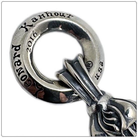 新にロンワンズのメイティングフライトコレクションに加わったベルのペンダント。その名称からもレナードカムホート氏との関係性を感じさせるブランドの雰囲気も強く感じるベルのペンダントで、クロムハーツを立ち上げた三人の内の一人がレナードカムホート氏である事を再確認する事となるアイテム!リング部分には旧ブランド名の 「レナードカムホート」も刻み込まれ、この時代になって新たにレナードカムホート氏が遺した 「名作」 がラインナップに加わる事となった。