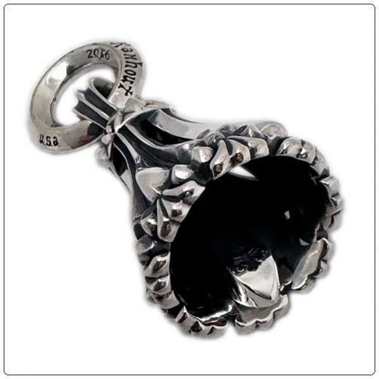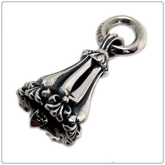 新にロンワンズのメイティングフライトコレクションに加わったベルのペンダント。その名称からもレナードカムホート氏との関係性を感じさせるブランドの雰囲気も強く感じるベルのペンダントで、クロムハーツを立ち上げた三人の内の一人がレナードカムホート氏である事を再確認する事となるアイテム!リング部分には旧ブランド名の 「レナードカムホート」も刻み込まれ、この時代になって新たにレナードカムホート氏が遺した 「名作」 がラインナップに加わる事となった。
