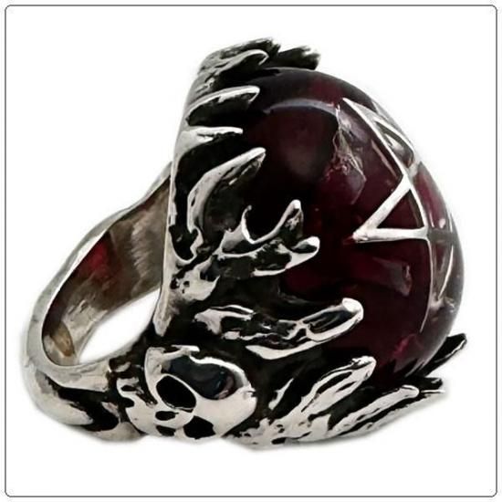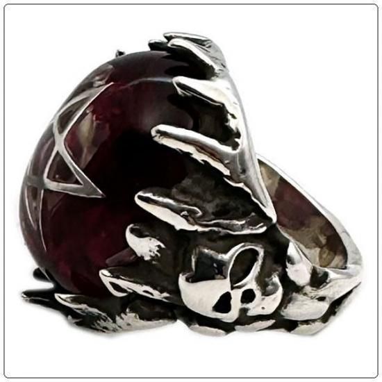 ALEX STREETER/HELLFIRE ANGEL HEART RING W CLACK STONE (CLACK RED)