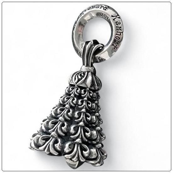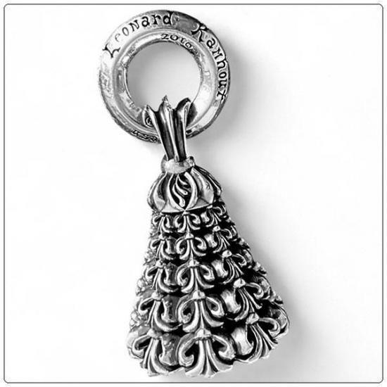 新にロンワンズのメイティングフライトコレクションに加わったベルのペンダント。そのベルの細部からもレナードカムホート氏との関係性を感じさせるブランドの雰囲気も強く感じるベルのペンダントで、クロムハーツを立ち上げた三人の内の一人がレナードカムホート氏である事を再確認する事となるアイテム!リング部分には旧ブランド名の 「レナードカムホート」も刻み込まれ、この時代になって新たにレナードカムホート氏が遺した 「名作」 がラインナップに加わる事となった。