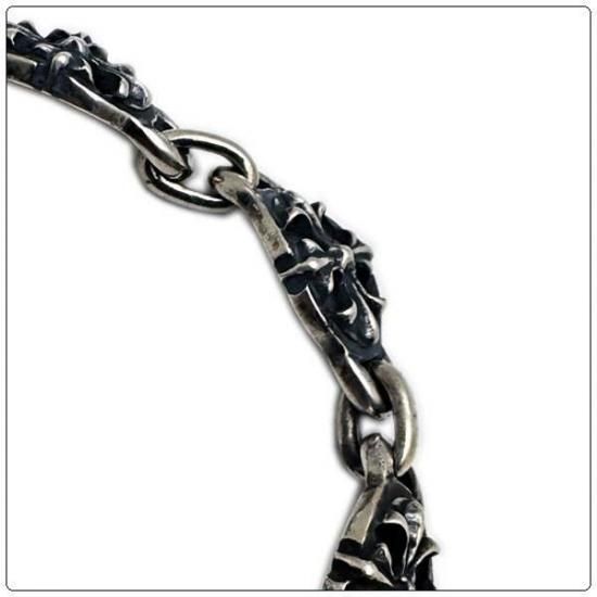ガボラトリーのオフィシャルカタログに掲載されるレギュラーで展開されるブレスレットのミニチュアラインの部アイテム!シルバーアクセサリーのデザインとして古くから存在するクロスのモチーフを、ガボール氏なりの解釈でデザインされたクロスオーバルのモチーフは、手作業で彫り出された様な、ハンドメイド感を感じる歪みも特徴的で、一つのアートな作品として見ているだけでも、その世界観に没頭する事となります!ミニチュアサイズのクロスオーバルがリンクしてブレスレットが構成されており、ボリューム的に着け易い存在感で、ガボラトリーの色濃いゴシックな世界観を嘆じながら、普段から着用して頂けるブレスレット!